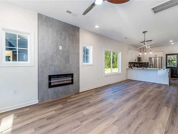 Experience affordable luxury in this beautiful 3-bedroom, 2.5-bath home featuring stylish design and quality finishes. Step into a welcoming living room highlighted by a bold accent wall and modern electric fireplace, perfect for cozy evenings. Large windows throughout the home fill every space with natural light, enhancing its warm and inviting feel. The kitchen offers sleek countertops, modern cabinetry, and a functional layout that opens to the dining area—ideal for everyday living. Upstairs, the spacious primary suite includes a private en suite bath for added comfort and convenience. Two additional bedrooms provide flexibility for family, guests, or a home office. Enjoy the added benefit of a 1-car garage and thoughtful details that blend comfort and value. Conveniently located near major highways, this home delivers modern living and timeless style—proving that luxury can be affordable. Home is approximately 30 days from completion. NC agent has interest in LLC. Tax value is land