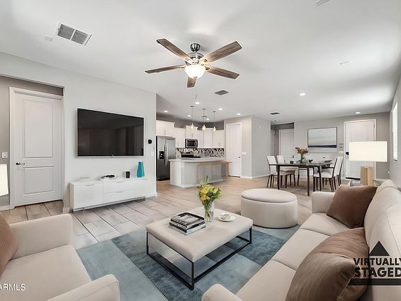 You've found it! Here is a turn-key property less than five years old in the sought after gated community of Roosevelt Park in Avondale. This Huntley model features 4 bedrooms and 3 full bathrooms including the upgrade of a Generation Suite with its own en-suite full bath. The open floor-plan features a beautiful and spacious white kitchen with center island, Quartz counters, tiled backsplash, walk-in pantry and Stainless-Steel appliances. The primary bedroom features a walk-in closet and en-suite bathroom with an upgraded 60'' shower and double vanity sinks. New ceiling fans are in the living room and all four bedrooms. All windows include white faux wood blinds. Beautiful 12'' x 24'' ''driftwood'' plank floor tile in all the main areas, with carpet in the bedrooms.