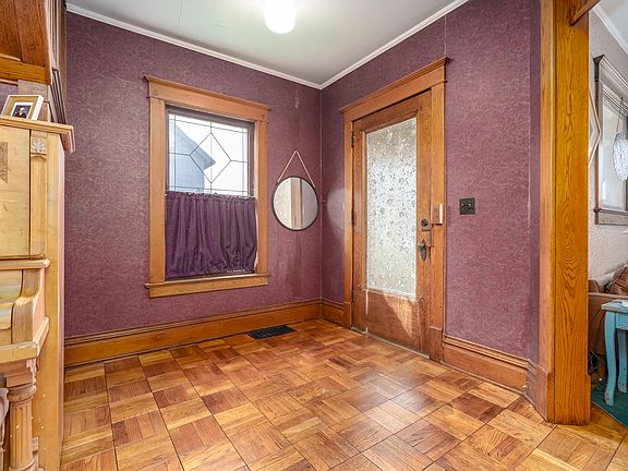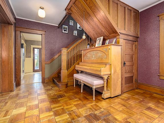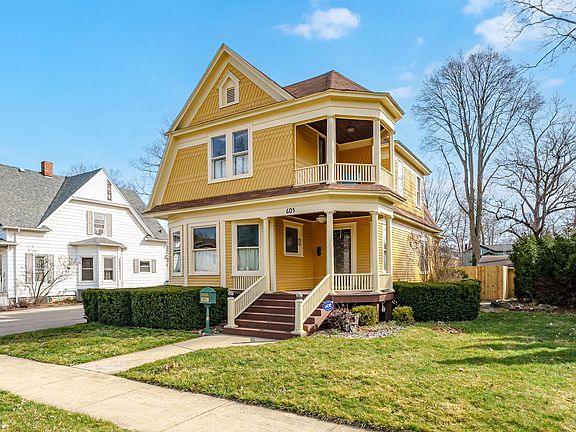 Stunning Victorian home with over 1,700sq ft. Step back in time when you enter the foyer with refinished floors. The living room has built in bookshelves and the original fireplace hardware. A pocket door opens to the large dinning area. Kitchen has been updated to the style of the home and has French doors that open to a back porch. Back enters to a mud room. The grand oak staircase takes you up to 3 large bedrooms. Bathroom has been remodeled and has a jacuzzi tub. The primary has its own private balcony to relax with a book or morning coffee. The house has been recently painted and the porches are composite, for no maintenance. There is also a 20x40 pole barn with two oversized garage doors, heated, and 200amps service, and metal roof. Fenced in back yard and home warranty