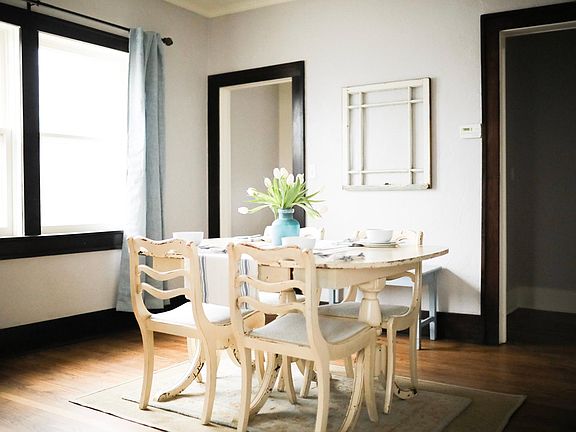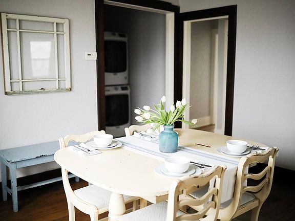 This spacious duplex apartment is just steps from the Paseo Arts District! The original fireplace, woodwork, and windows make this a well lit and charming space. This is upstairs, two bedroom apartment was renovated in 2018 with updates including: new HVAC, quartz countertops, new tile, paint, refinished hardwood floors, in-unit laundry, separate double wide driveway separate from the downstairs apartment. Other features include a large dining room, large balcony, fenced backyard, built in storage, and a few optional furnishings. Stackable washer and dryer, fridge, gas stove, microwave included. Renter is responsible for all utilities. Water/Trash/Sewer is $45/mo in addition to rent. High speed internet can be shared with downstairs apartment for $25/mo. Owner coordinates lawncare, renter splits expense with downstairs renter.