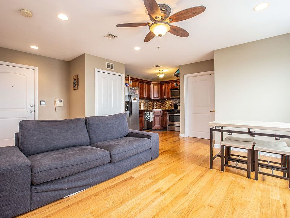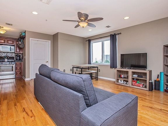Welcome to this stunning top-floor apartment located in an elevator building, boasting exquisite features and views of downtown Manhattan. This beautiful unit offers 2 bedrooms, 2 bathrooms, and a range of luxurious amenities that ensure a comfortable and convenient lifestyle. Step inside and be greeted by a tastefully designed interior, adorned with hardwood floors that flow seamlessly throughout the entire unit. The open living and dining area is illuminated by dimmer lights, creating a warm and inviting atmosphere, making it the perfect space for entertaining guests or enjoying quiet evenings at home. The modern kitchen features stainless steel appliances, including a dishwasher for effortless cleanup. The elegant tile backsplash perfectly complements the sleek granite countertops, creating a sophisticated and stylish ambiance. The cherry cabinets provide ample storage space, and the LED cabinet up lighting adds a touch of elegance to the overall aesthetic. This condo offers more than just style and comfort; it also provides practicality and convenience. With central air conditioning, you can easily maintain the ideal temperature throughout the year. The in-unit washer and dryer makes laundry a breeze, saving you time and effort. Additionally, the unit includes a deeded garage parking spot, ensuring hassle-free parking in the bustling city.