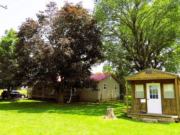 So much to offer. This four bedroom, two full bath home sits on a level 1/2 acre m/l with mature shade trees. Walking in from the covered front porch, you'll notice the original hardwood floors in the living room and the new vinyl plank in the kitchen. The kitchen features a newer dishwasher, double oven range and a smart fridge that can probably do your taxes. The fenced back yard has a deck with pergola for grilling and entertaining. Workshop/tiny home in front. Detached double car garage. Storm shelter. This home is in town, but sure does have that country feel.