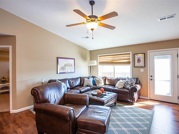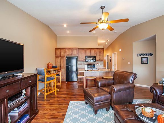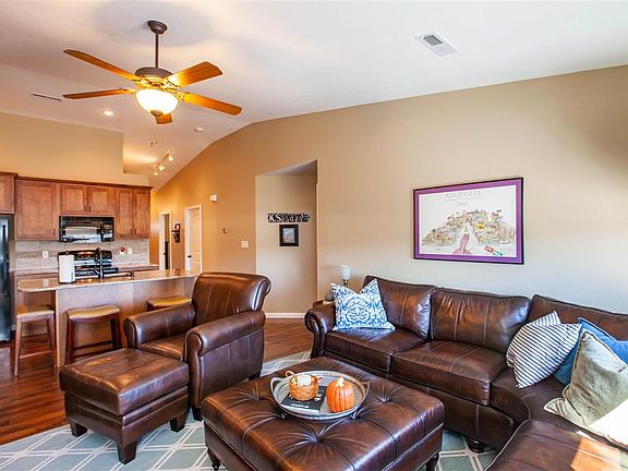 Looking for a smaller space but don't want to lose high quality finishes? Don't miss this half duplex. This well maintained home offers wood flooring, quartz countertops, an expanded patio and fenced in back yard. Both bedrooms have their own bath and large closets. This home has been a great game day house and still feels brand new. With acceptable offer, seller is willing to convey: Bed sets in both bedrooms White wicker dresser and tv cabinet, drawers, nightstands in bedroom TV and cabinet in living room Sectional and matching ottoman Leather chair Barstools Oak pub table and chairs