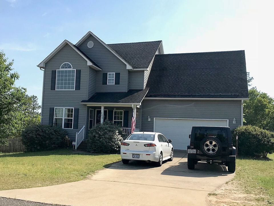 Great 4 Bedroom Home with 3.5 Bathrooms located in SUNSET RIDGE of Harnett county. This home features laminate and tile flooring. Downstairs is the living room and dining area with pass through gas log fireplace. The kitchen has all appliances, center bar/island, pantry, laundry room with chute, half bathroom. Smaller master suite downstairs has a full bathroom, walk in closet and access to the rear deck. Upstairs you will find the Master, two bedrooms and full bathroom. The master suite has laminate floors, bathroom with tile, jetted tub, sep shower, double sinks and walk in closet. Large lot with rear fence and deck.