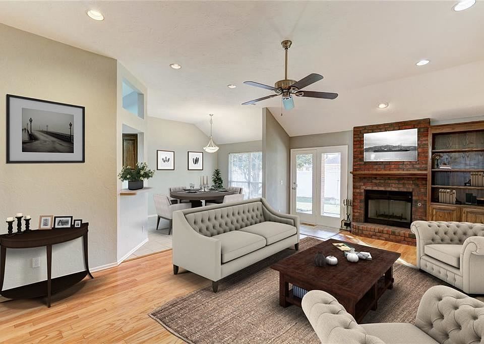 Manufactured wood, novel ceramic & freshly laid carpet paves the way thru this charming house highlighted with tall ceilings, lots of windows & new paint thru-out. The pathway begins in an inviting foyer with colonial style columns, opens to a huge living area with recessed lighting, a dining room large enough for a six top table & chairs, & a big kitchen with tons of cabinets & counter space. The corridor flows into a spacious master with a 5-piece en suite boasting a new counter top and mirror & a huge Australian Closet, and leads to two big bedrooms, a large main bath & lots of storage on the opposite side of the house. The french style door in the living area opens to a fantastic covered patio perfect for grilling & chilling with friends & family. The seller will miss those spring & summer mornings waking up to the birds singing while squirrels frolic & play in the mature trees. We offer this immaculate manor to you at a reasonable price, so schedule your private showing today.