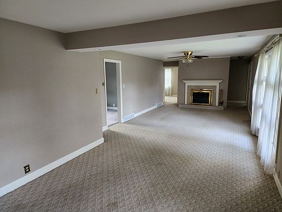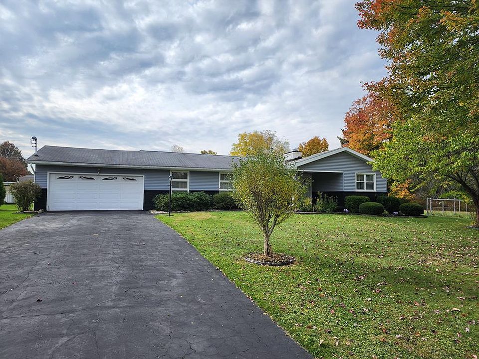 Situated on over a half acre lot on a quiet dead end street, this Ranch home features a 30 x 20 heated work shop addition to a 24 x 20 two car garage with 220 amp service. Extra large living room - dining room combo with a gas fireplace. Large owner's suite, two full baths, and a rec room with wood burner. Newer door and windows, glass block windows, insulated attic, brick patio, and storage shed. Basement partially B-Dry. Minutes to I-71.