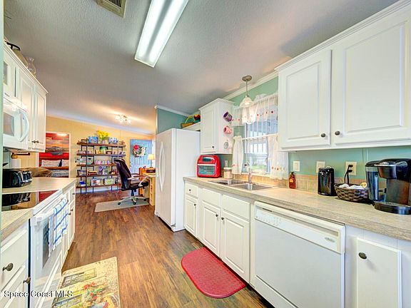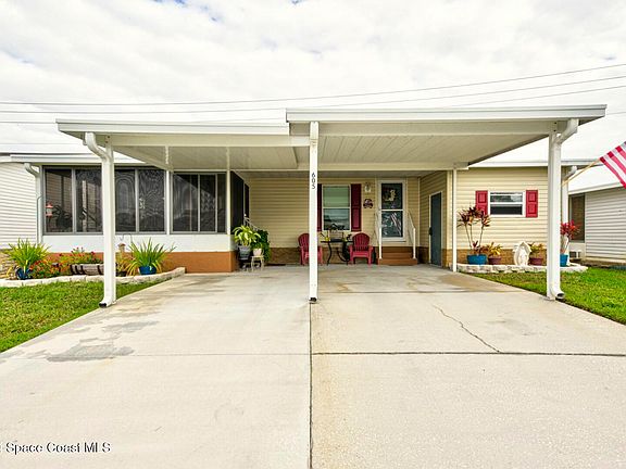 Extremely well maintained and has 2 carports!!! A convenient way to park 4 cars. This 2 bedroom, 2 bath home has new flooring throughout with new appliances. New roof in 2022, new AC in 2023 and new Hot Water Heater in 2021. A sunny screened porch on the front of the house to enjoy the Florida weather. A place to park your RV on site. Stop by and see this home in Lost Lakes, a very active 55+ community where you own the land. Are you ready for the Florida Lifestyle? Lost Lakes has everything from a heated pool, large hot tub, clubhouse to play pool or work out. Sit by the lake, play pickleball, or watch all of the rocket launches that are happening on the Space Coast of Florida. Centrally located 30 minutes to the beach, Orlando, and the airport.
