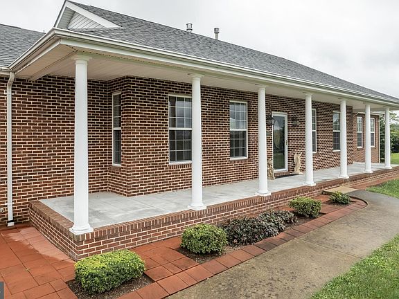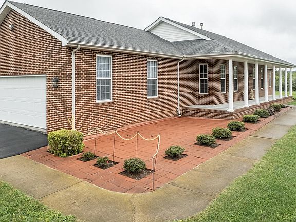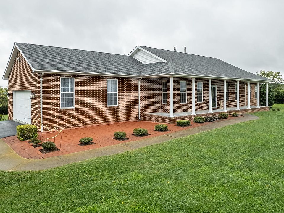 A must see all brick ranch/rambler on 2.45 acres! NO HOA. Panoramic Views come with very well-maintained one level Brick home. Enjoy the covered front porch, or the covered rear porch for the views, or the patio area. Hardwood flooring in Living room, hallway, dining area. Bedrooms carpeted. Owners' bedroom has a walk-in closet. Bathroom ceramic tile flooring, double sinks, separate shower, separate tub, and a walk-in closet as well. Living room has a gas fireplace, Granite counter tops in kitchen, with recessed lighting, large laundry with washer & dryer hookup. with plenty of storage space if needed. Full basement, comes with built shelving for storage. Basement also has rough in plumbing for extra bathroom. Walk out basement into the rear yard. The basement walls, seller has put TR111. Seller has the corners marked. buried 500 gallon propane tank. Tank isn't rented. Only 15 minutes from Schools, shopping & hospital.