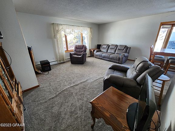 Spacious two-story home sitting on 3 city blocks in small town Manvel, ND! This home consists of 2 bedrooms and an office on the main level, a large primary bedroom & 2 additional bedrooms upstairs, a bathroom on every level, a large family room in the basement and a 3 stall garage! Some new flooring, a bathroom remodel started, partially finished basement and tons of storage! A little TLC will go a long way! SOLD AS-IS no FHA or VA Financing!
