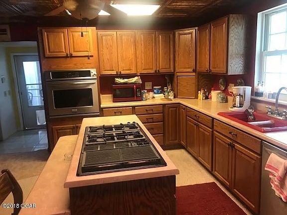 Lots of nice amenities & upgraded items. Nice oak kitchen w/center island with Jenn Air downdraft cooktop w/grill, tin tiled ceiling, lots of pullouts in cabinets, red sink. Home has central H/A & gas backup wall units, screened back porch, large slab for patio, great place for an addition! Tankless HWH replaced one year ago. Newer vinyl windows. Storage building stays. Home is handicap accessible. Very nice 20x27 det. garage/shop insulated. Perimeter is completely fenced w/electric gate (currently disconnected)