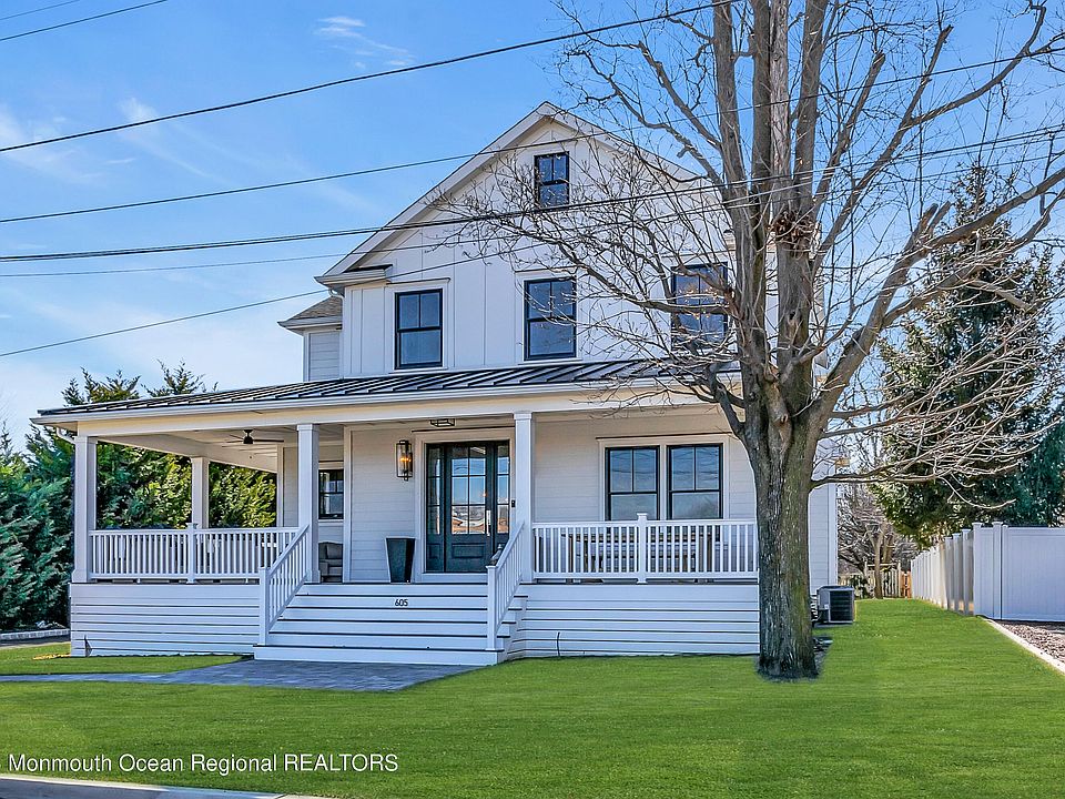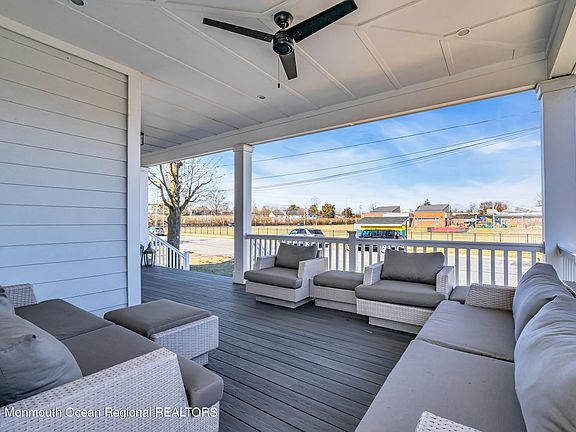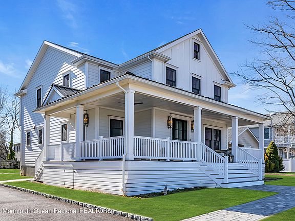 Offered for $5,500. per week from Memorial day to June 21st and $7,000. per week from June 29th to July 31st. Lovely spacious & beautifully decorated custom seashore home - built in 2021. ONLY 7 SHORT BLOCKS to Spring Lake Beaches & boardwalk. 4 BRs Including 2 queen beds, 1 king, 1 twin 3 & 1/2 baths. Open and bright floor plan w/designer kit w/ wet bar, office w/pull out queen sofa bed, full finished basement with bar, pro shuffle board & full Bath - Expansive covered front wrap-a-round porch plus a rear covered porch overlooking the beautiful rear grounds. This is the perfect summer vacation home. 4 Spring Lake beach, pool & locker badges included - No Pets - No Smoking - No Vaping and No Groups.$150.00 utility fee per week