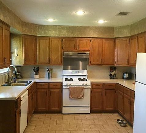 Fabulous home updated from top to bottom. Great natural & canned lighting in kitchen and dining areas. Ceiling fans. The stone fireplace and built-in bookshelves add the perfect finishing touches to the living area. Tasteful hard tile and beautiful wood laminate flooring throughout. 2 closets in master. Remodeled baths. Ample storage space. Large front deck & private greenbelt views in HUGE backyard! Washer/dryer/pets negotiable. Quiet neighborhood near shopping, schools, trails, parks, and toll road.