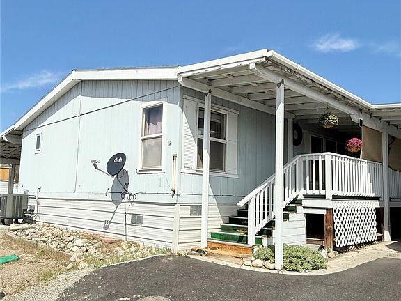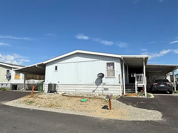 Omak - Doublewide Manufactured Home in Park - Home features 3 bedrooms/1.75 bathrooms, large living room with vaulted ceiling. Built in cabinetry throughout. Kitchen with dinning area and laundry room. Primary bedroom with walk in closet, attached bathroom with double sinks. Heat pump. Covered back and front porches. Two Carports. Two Storage Sheds. City of Omak utilities. Park rules apply. Buyer will need to be park approved. Cash sale only. $65,000. H-3702/MLS2419612.