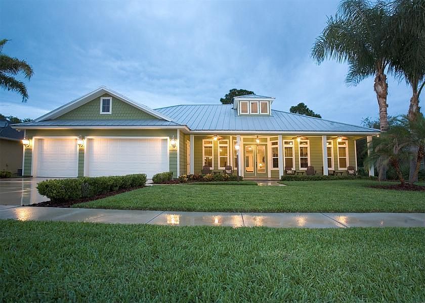 Relax on the front or back porch of this Key West Style Home with lush tropical landscaping. This immaculate and well-maintained custom built home boasts upgrades throughout. You are welcomed by an open design, split-bedroom plan with windows and French doors galore. Doors are 8 feet and ceilings are a minimum of 10 feet, some reaching up to 23 feet. You will be impressed by the upgraded wood and exquisite porcelain tile flooring. The remarkably large gourmet kitchen has granite countertops, stainless steel appliances, built in refrigerator with matching stove hood, glass top stove, two sinks, center island, breakfast bar, and abundant custom cabinetry. All bathrooms have pedestal sinks and master bath offers cast iron claw foot bathtub, tile walk in shower, separate water closet, his and her vanities, and his and her walk-in closets. Additional spacious bedrooms have walk-in closets. Cat 5 Ethernet and data cabled with central wiring hub location, pre-wired for surround sound in living room and front and back porches, security system, tinted & insulated windows, multiple thermo pane insulated skylights, wood trim on all interior windows, and pre-wired for a pool. Above the oversized three car garage, you will find ample attic space with trusses, flooring, and a ladder. Exterior features include a standing seam metal roof, concrete block on all sides with decorative Hardie board siding accents, and a transferable termite bond. Owner will consider Financing!!