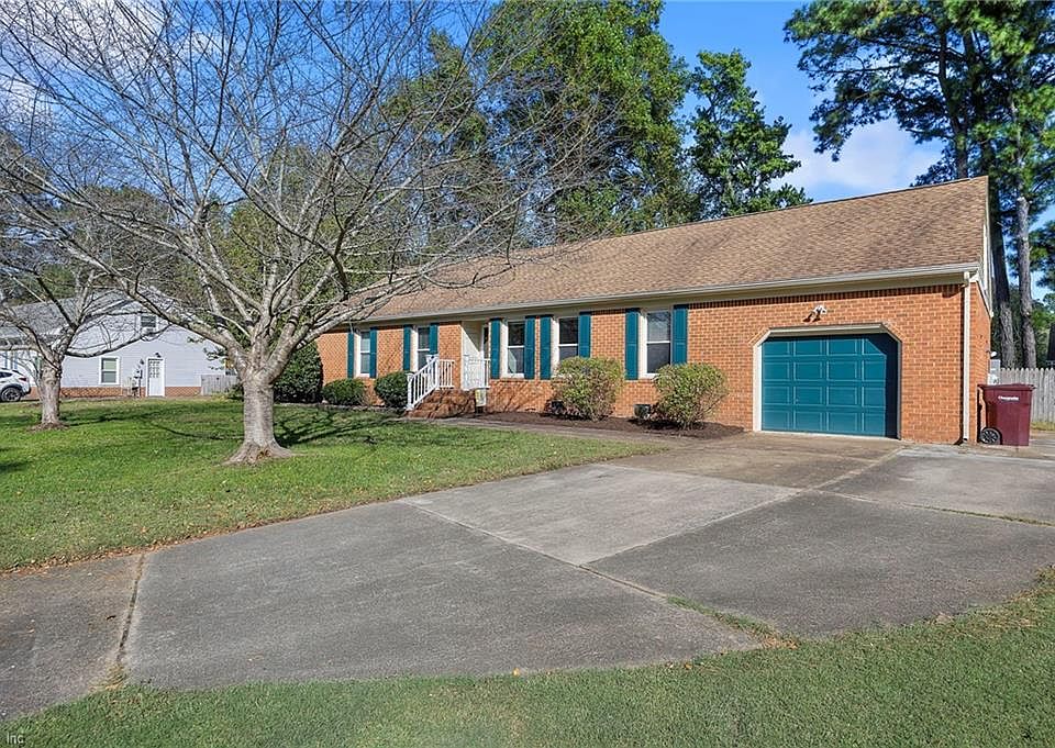 A Beautiful 4 Bedroom brick ranch home in Great Bridge school district. This home features a large Formal living room and dining room, granite counters in the kitchen, large eat-in area and solid wood kitchen cabinets. It has gorgeous laminate, luxury vinyl plank (LVP) Flooring and Ceramic tile flooring, and a nice wood burning fireplace. This home has a large attic that is the width of the house and fully floored. There is also a second smaller attic, a tank-less water heater, newer windows, Newer Fridge, and New HVAC. This ranch style home sits on a large lot located in a court with a fenced back yard. Call today for a appointment to see this beautiful home in the heart of Great Bridge!