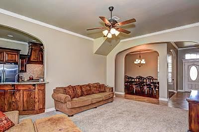 Must see this terrific one owner home. Two living, two dining, split floorplan with a study. Bonus room upstairs has a half bath and walk-in closet so it could easily be a second master suite. Granite countertops in bathrooms, laundry room and kitchen, ceiling fans in almost every room. Stainless steel appliances, gas range and pantry in kitchen. Oversized laundry room with folding counter and storage galore throughout the house. Wood flooring in formal dining. Large master with raised ceiling, double vanities, separate jetted tub/shower, private toilet and walk in closet. Covered patio perfect for outside sitting time. Don't miss out on this one!