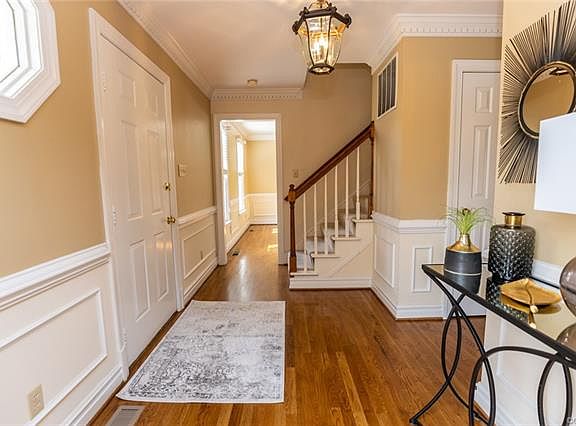 Now available is this well maintained bright & sunny 3300+ square foot 5 bedroom home in Chesterfield! Mere minutes from accessible I-295, I-95, and I-64 makes commuting to work or travel a breeze, and itâs a quick hop to strip malls and restaurants for meals any day of the week! The recent sunroom / Florida room they LOVE has vaulted ceilings, a ceiling fan for air circulation, and extra large picture windows PLUS skylights! Lots of modern kitchen upgrades like granite counters, a large cast iron hanging pot rack, a newer kitchen island with built in oven to free up perimeter counter space, a large pantry, and room for any kind of refrigerator you want! While itâs an eat-in kitchen thereâs also a formal dining room that could be converted to an at-home office or study or other bonus space. Crown molding and other decorative trim throughout really make the home pop with the warm paint colors. Hardwood floors throughout the main level, and carpeting upstairs. True master suite; and the master bath has a jacuzzi soaker tub! Dual zoned central air for the upcoming summer months to keep you cool inside, and the nice outdoor deck to enjoy outside! Set up a showing and check it out.