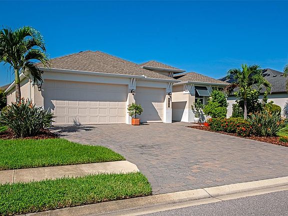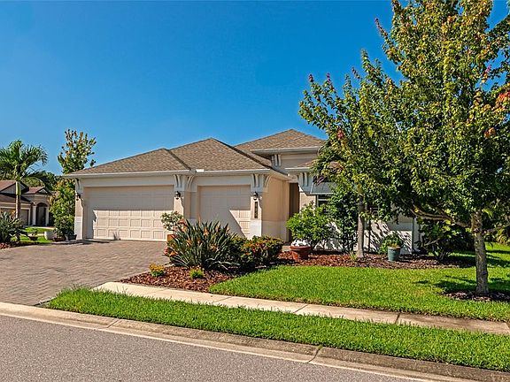 Under contract-accepting backup offers. From the moment you arrive in the coveted community of Greyhawk Landing, you'll feel the difference. This beautifully appointed "Captiva" 3 car garage model by Sam Rogers offers a rare opportunity to embrace the Florida lifestyle you've been dreaming of. As you step inside, you are greeted by an expansive great room where soaring volume ceilings and an open-concept design create a breathtaking first impression of light and space. The true heart of this home is the gourmet kitchen, a culinary haven where family and friends will naturally gather. A commanding center island provides ample space for meal prep and casual dining, complemented by timeless wood cabinetry, a full suite of stainless steel appliances, and the highly sought-after natural gas cooktop. The living space extends effortlessly outdoors to a private, screened lanai—the ideal setting for savoring quiet mornings or hosting lively weekend barbecues. Enclosed by lush, mature landscaping, the backyard is a true sanctuary, offering a serene escape and more than enough room to design the pool you've always wanted. Functionality and peace of mind are paramount, with ***HIGH IMPACT GLASS WINDOWS & DOORS*** installed throughout for ultimate protection and energy savings. Living in Greyhawk Landing is an experience in itself. This premier community offers residents an active, resort-style life with the security of a gated entrance, two sparkling pools, a fitness center, scenic nature trails, and sports fields for all to enjoy. Conveniently situated in the heart of East Manatee, you are just minutes from A-rated schools and premier shopping destinations. This home is more than a residence; it’s a lifestyle waiting to be claimed. Be sure to explore the immersive 3D walkthrough via the virtual tour link, and then contact us to schedule your exclusive showing. Your new chapter starts here!
