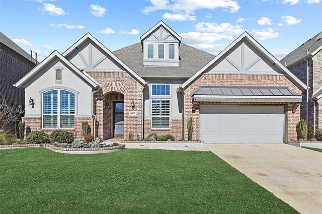 Stunning single story with modern design elements in the award-winning Trinity Falls! Experience great everyday living both inside and out. Open floor plan with large windows & great natural light. Island kitchen with breakfast bar, floor to ceiling cabinets with chrome hardware, & quartz countertops. Bonus room with french doors perfect for a game room, office, or media room w blackout blinds. Upgrades galore include amazing wood floors, plantation shutters, gas log fireplace, extended patio, landscaped backyard & 3 car garage. Private Master Suite. Only 6 miles from downtown McKinney. Enjoy the outdoors with a community pool, playgrounds, 350-acre park, bike trails, disc golf, amphitheater, lakes & dog park!