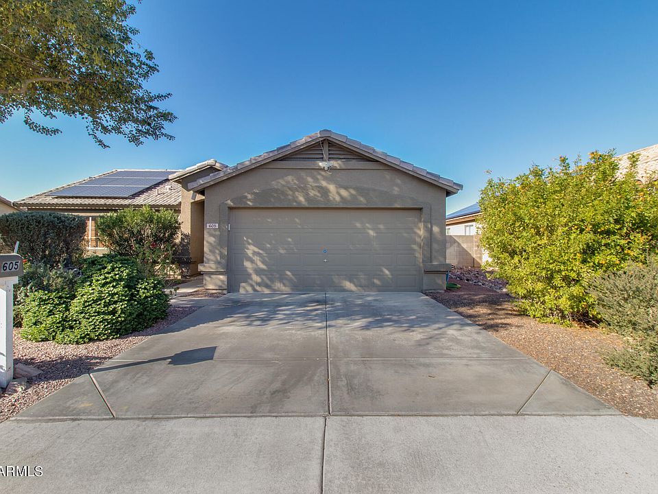 A beautiful 3 bedroom, 2 bath property in the wonderful Estrellas Garden Community. With lovely curb appeal and a fantastic interior, this home has a ton to offer. The interior has a many upgrades including vaulted ceilings, two-tone neutral paint, wood laminate floors, and lots of windows for natural light. The fantastic kitchen features granite countertops, breakfast bar, pantry, stainless appliances & ample cabinet space. The living area boast beautiful wood laminate flooring, master bedroom with vaulted ceiling, master bath with dual sinks & walk-in closet, as well as faux wood blinds throughout. The cozy backyard features pavers, covered patio, low maintenance landscaping & no rear neighbors to create a secluded oasis of your own! Walking distance to pre, elementary and high schools.