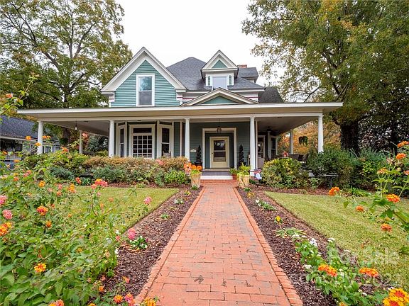 This is your chance to own one of the most significant historic homes in Union County! Gorgeous South Church St in the downtown Historic District- Monroe. Circa 1901- the Sikes-Beck house welcomes you with wrap around front porches, 10 ' ceilings, 5 fireplaces , pine floors and intricate millwork. Custom leaded and beveled glass throughout, Spacious rooms, Large open Kitchen/family room rear porch and great private fenced yard master on main or upper, 4 beds and 3 full baths, architectural shingles in 2007, dual zone hvac! Make sure to check the floor Plan and the virtual tour attached to the MLS! Priced to sell! Bring your best offer! Recently Appraised for $440,000. The primary bathroom on the second floor is heated and finished, but the ceiling height is too low to count. That area is 174.2 sf. The porches and patio total 1306.4 sf.