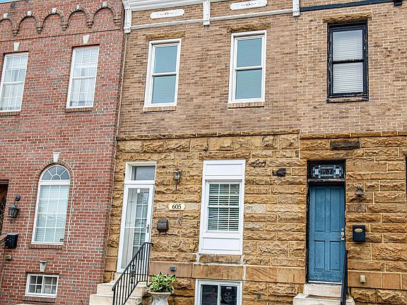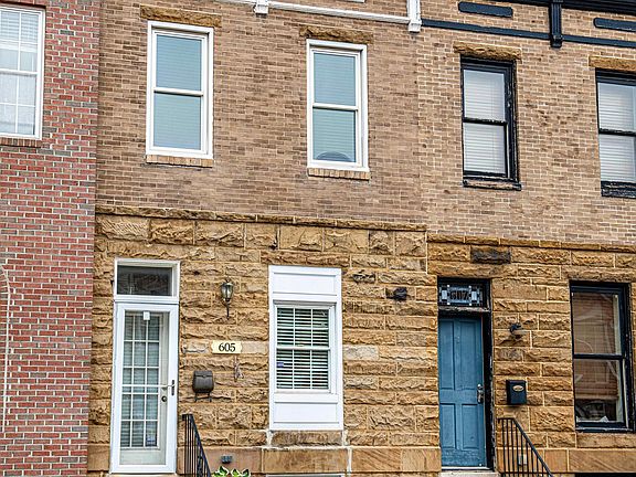 Welcome to 605 S. Clinton Street! This interior rowhome is located in the highly desirable neighborhood of Canton! Close to Canton Square, this home is perfectly situated close to dining, shopping and neighborhood festivities! This move-in ready home features three levels, two very spacious bedrooms and one full and one-half bath! Enter the foyer to an open concept main level floor plan featuring hardwood flooring, exposed brick wall, living room with nonworking fireplace that gives additional architectural detail! The main level powder room is great for guests and entertaining! The extremely large kitchen features ample cabinetry, a stainless-steel gas range, microwave and dishwasher as well as a new garbage disposal. The oversized Amish constructed island features additional storage, additional counterspace for food prep and can seat up to six people for dining! This kitchen will delight the home chef! The second level of the home has two well sized bedrooms and a large full bath with linen closet. The exterior space of this home is absolutely amazing! French doors lead to a very private rear courtyard measuring 33' X 13'. This courtyard is perfect for outdoor entertaining, dining, and just grilling and chilling! Ascend the staircase from the courtyard for access to two additional decks! The second level deck measures 12' X 10' and has composite flooring. An additional staircase leads to the magnificent rooftop deck which measures 15' X 12' and also has composite flooring. The views from the rooftop deck are truly astonishing! Some home features and updates include: home freshly painted throughout! Brand new second level carpet! New garbage disposal! HVAC 2019. Water Heater 2020. Don't miss your opportunity to view this Canton gem!