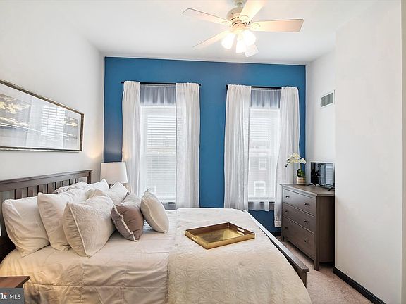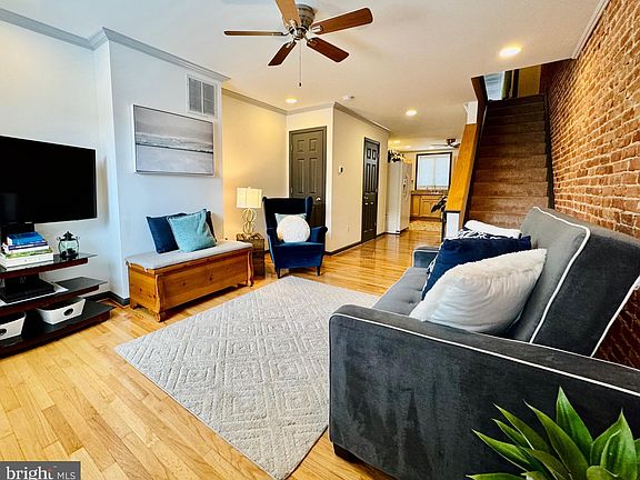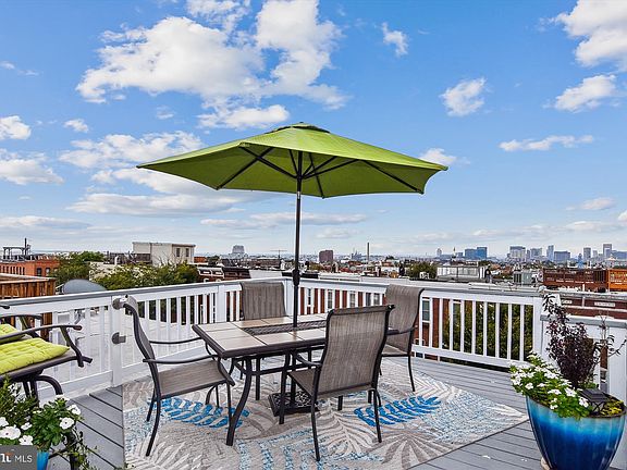 Welcome to the best of Canton living! This home seamlessly blends modern features with classic character and charm. The open concept first floor offers recessed lighting, half bath, storage and gas appliances while highlighting the original brick from the early 1900’s. Quiet, carpeted stairs lead up to the primary bedroom with soaring ceiling & walk-in closet, full bath with jacuzzi tub in the hallway, a second well-sized bedroom with closet, full-size stacked washer and dryer (2018 outfitted with auto shut-off and additional storage. From the bedroom level, ascend the sun washed indoor stairway to the best view in Canton. Meticulously maintained and furnished rooftop deck (updated 2024) with seating for many boasts stunning panoramic views of the city skyline. The perfect place for your next crab feast! New roof and gutters and skylight (Aug 2022). Head back downstairs to the updated kitchen and out the back door to TWO parking spaces with enough room to store outdoor trash and recycling receptacles. A short walk around the corner to place receptacles each week. Storage, storage and more storage greets you in the basement level. Along with HVAC, gas water heater and furnace (all new in June 2023), easy access to all controls, updated sump pump (2020) with full back up system . Head outside for a scenic stroll to the Canton waterfront - concerts & events, the water taxi - easy transport over to the stadiums, the vibrant shops and restaurants on the square, Brewer’s Hill and Patterson Park….. Plus a very short drive to Rt 95. Don’t miss the chance to own this beautifully appointed home with, not only an incredible location, but too many thoughtful extras to mention here.