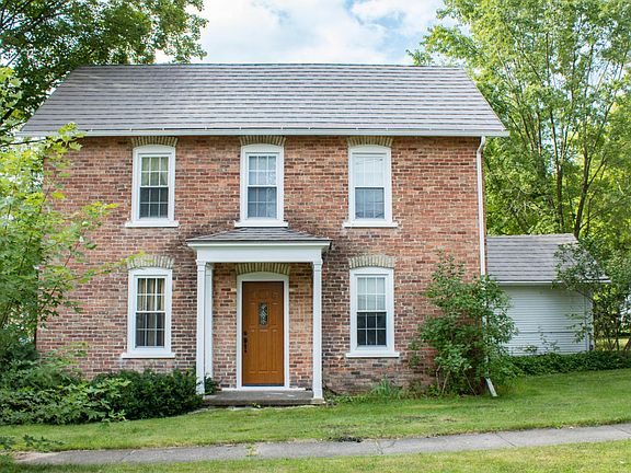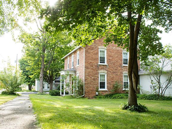 A historic gem with few rivals, this 5 bed 2 bath home is an incredible piece of elegance and history. Over $50,000 of recent upgrades and updates, tastefully done to enhance the longevity and character of this stunning 1880's brick home. Starting with a spacious corner lot in the heart of town, less than a 5 mins walk to the school, gas station, and downtown. A large garage for parking and storage, brick pavers in the drive, and an outdoor gazebo. Inside, refinished and amazingly preserved original hardwood flooring and trim, with a surprisingly spacious and open layout. Brand new top-of-the-line windows,and a newer roof with a lifetime warranty. Central air and in-ground irrigation. Original blueprints and architect drawings included. One of a kind home, incredible opportunity.