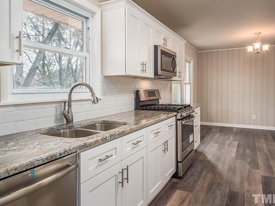Updated Ranch with more than half acre lot! Updated Ktichen with subway tile, granite counter tops, stainless steal appliances, luxury vinyl tile floors and soft close cabinets. Master suite with bathroom and walk in closet. Original hardwood floors restored to it's original glam. Brand new windows throughout, fresh paint and a giant backyard! New electric water heater. Fantastic neighborhood close to 40, Lake Johnson and Crossroads Plaza! Don't miss this beautifully updated home!
