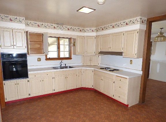 FHA Case #137-524327 As Is. (IE) $2585 Repair Escrow. 1653 Sq ft Ranch with 3 bedrooms, 1 bath, and 2 car attached garage. Double sided fireplace place connecting living room and dining room. First Floor laundry. Basement with rec room, dry bar, and brick woodburning fireplace. Located close to Indian Oaks Country Club. LD 4-15-15. E.H.O.