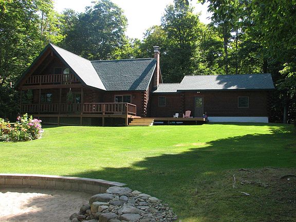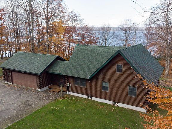 173' of shoreline on Peck Lake located entirely within New York State's Adirondack Park. This 3BD/2BA home with a loft has been meticulously maintained and sits on 1.2 acres. First floor offers 2 bedrooms, full bath, foyer, open concept kitchen and a cozy great room with a wood stove and wonderful water views. Soak in the sights from the second story bedroom balcony with adjacent full bath. Loft space offers a great location for a home office. Beautiful wide plank flooring throughout, attached 2-car garage, and access to 1370 acres of water from a private cove with a sandy beach. Lake has 40HP limit and other restrictions - see deed and additional details in MLS docs. Dock