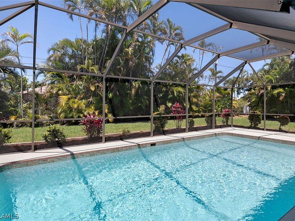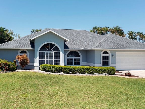 Fantastic location in the desirable area of SE Cape Coral! The home has a newer roof (2020), hurricane impact windows, roll down shutters for the lanai, and a Kevlar hurricane screen to cover the front doors - ensuring your home is secure during storm season. Step through the double doors to discover a spacious great room with vaulted ceilings and stunning view of the pool and lanai. You'll notice the elegant wood tile flooring throughout the main living areas. The updated kitchen is adorned with sleek quartz countertops, stainless steel appliances, and ample cabinetry for all your culinary essentials. The primary bathroom has also been updated with granite countertops, dual sinks, and tiled shower. The backyard boasts an extended covered lanai with stylish shiplap ceiling, an expansive pool that reaches 8 feet deep, access to the guest bathroom, beautiful landscaping, and had a total rescreen in 2022. Assessments are in and paid! This is a great location. Tucked away in a quiet neighborhood yet close to shopping, restaurants, downtown Cape Coral, and major roads.