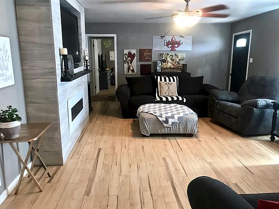This home is perfect for a large family or a family just starting out. Inviting Pergo Wood floors create a farmhouse chic feel that flows from the large, open living area with a floor-to-ceiling fireplace and entertainment center into a bright, white, spacious eat-in kitchen with ample counter space. All the appliances are stainless steel and stay with the house. A convenient spice drawer is tucked neatly away beside the double oven, and for extra convenience, there is a large chalkboard on the front of the pantry door, perfect for making grocery lists or leaving appointment reminders. There are four large bedrooms, each with almost-new carpet and plenty of closet space. Both bathrooms are recently updated, and the master includes a walk-in shower with a rain shower fixture and beautiful glass tile floor. This property is situated on a 1/4 acre lot with a spacious fenced yard and storage shed with new windows.