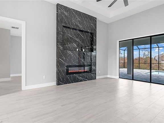 Move-in ready! Stunning new construction home located on a freshwater canal in the highly desirable Cape Coral community. This spacious home has a light/bright open floor plan, an office which could be used as a fourth bedroom, and is perfect for entertaining with a remarkable dream kitchen & custom pool. The oversized family room has a beautiful custom fireplace and entertainment area, oversized sliders to the lanai & pool and a volume ceiling. The impressive cook’s kitchen features soft close cabinets, quartz counters and an oversized center island with a waterfall design, tons of cabinet & counter space & all stainless appliances. The owner’s suite offers abundant room for a TV or reading nook area. The owners' bath has breathtaking finishes with a separate soaking tube & large walk-in shower. This split bedroom floorplan gives the owners suite plenty of privacy on one side with 2 additional bedrooms and bathroom on the other side. Relax or entertain on the large covered/screened lanai which is accessible from either the family area, master suite or 2nd bathroom. This fabulous home puts you close to all things important such as shopping, restaurants, hospitals, and more!