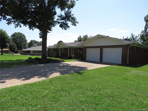 Go Big & Go Home! This brick home has 3 living areas, 3 bed 2.5 bath home with att. 2 car garage. Large back yard with nice covered patio with sliding doors out of living area. Wood burning fireplace. In Stouts Addition, the heart of Checotah. Call Today!