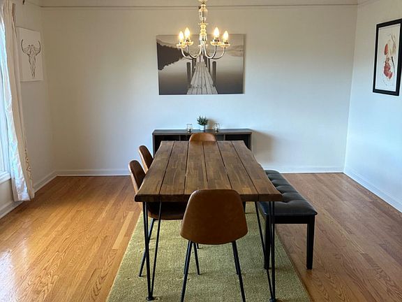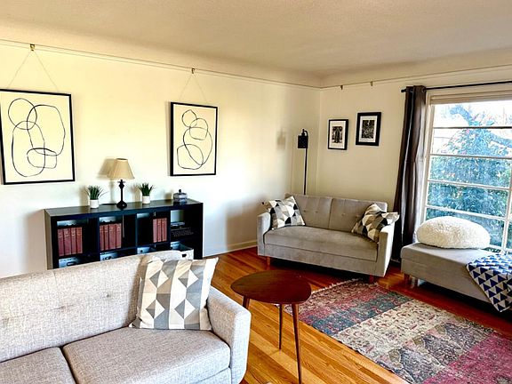 Gorgeous Mid-Century Bungalow in sought after South Burlingame neighborhood. South Burlingame is one of the jewels of Portland with its tree-lined streets, perfectly manicured yards, and gorgeous peak-a-boo views of the west hills, the cascade range, and Mt Hood. It's quiet, safe, and very family (and dog) friendly. This is a beautiful Mid Century Home for Rent - Just minutes from downtown and a world away: tucked into the quiet hills of SW Portland, this lovely 2+ bed / 1 bath bungalow, built in 1942, has all the classic Mid Century amenities: a fireplace, large windows, coved ceilings, and hardwoods throughout. The living room is spacious, with lots of natural light. The dining room is large with original built-in cabinets. The kitchen is newly refurbished with a gas range and lots of storage space. Both upstairs bedrooms are large and well-appointed, with plenty of closet space. The bathroom is newly updated with a shower, bath, and two sinks. The bonus bedroom (in basement) is cozy and perfect for guests or a spare office space with a lovely view of the backyard. The basement is large and carpeted, with built in bookshelves. The washing machine is brand new and the water heater is recently completely refurbished. It stays very cool in the heat of the summer and makes for a great (and large) TV and game room. The yard is lovingly maintained (monthly lawn service included) with plenty of open space and fully fenced backyard with two gorgeous, ancient trees shading the yard in summer. The yard is ideal for lounging in the afternoon or puttering around and planting flowers. The house is in South Burlingame with easy access to I-5 and only 5 minutes from downtown Portland. The neighborhood is mature, with lots of families, safe, and very walkable. Close to Fred Meyer and within walking distance to Portland institution Chez Jose. Also close to OHSU, Multnomah Village, Lewis and Clark, and only a few miles from New Seasons. This is the kind of house that becomes a home as soon as you enter. The ambiance is warm and inviting. It is an ideal home for lounging with a book or having friends over to enjoy the pretty views of the west hills. Owner pays for 2X monthly landscape and yard maintenance. Renters are responsible for all utilities.