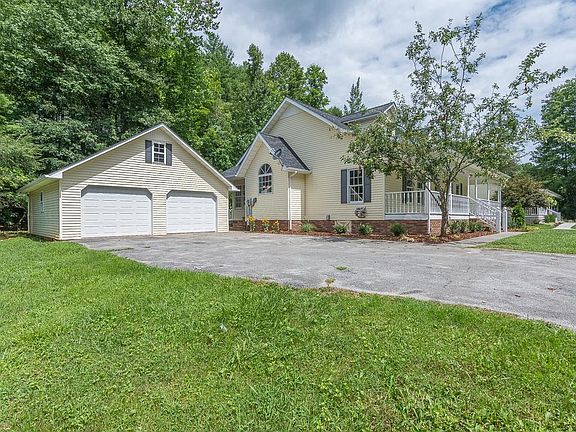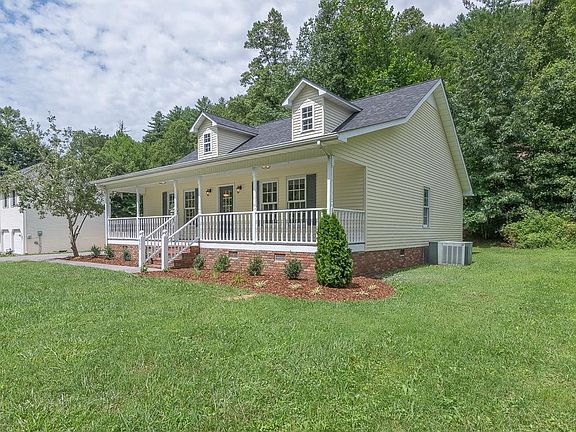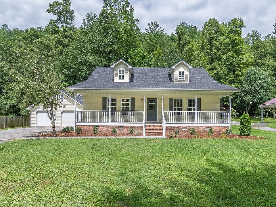 Bake your own apple pies with fresh apples from your own tree and let them cool on your covered front porch! This absolutely gorgeous 2950 sq ft Donald Gardner plan features 3 main level bedrooms and a flex room upstairs that could be used as a possible 4th. The stunning kitchen features a breakfast nook, vaulted ceilings and creamy cabinets with new tops. The den features new laminate flooring and built ins that are integrated into the oak steps and look straight off of pinterest. There is a breeze way to a huge detached 2 car garage with plenty of attic space. House has just been builder remodled and features all new flooring, all new lighting and plumbing fixtures, as well as smooth ceilings, new roof, trim and paint throughout. Fresh landscaping. This house is better than new and is directly across from the National Forest. Buyer/buyers agent to verify all info.