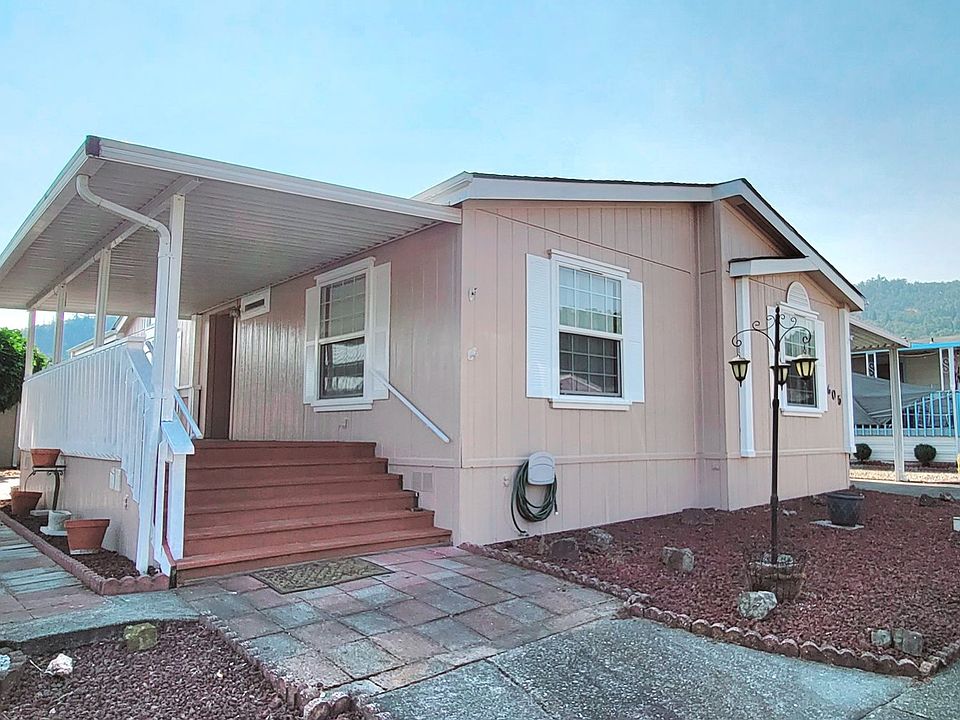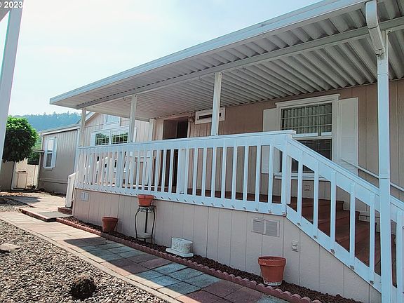 Don't miss this lovely home in a private gated 55+ community close to all the amenities in Roseburg. This home has two outbuildings, walk-in shower, side yard, covered porch, and privacy. This very clean home is well-maintained with new exterior paint. There is a ton of natural light in this bright and cheery home. The space rent includes water, sewer, and garbage services. Call for your private showing today!