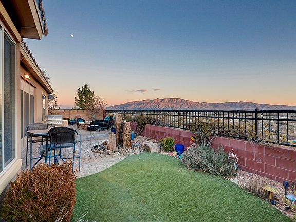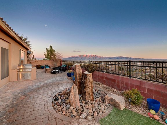 Unbelievable Single-story home with Unobstructed views of the City and the Sandia Mountains. Prestigious gated community located in Loma Colorado, Rio Rancho's premier Master Planned Community w/parks, trails & open space. Conveniently located to shopping, recreation and entertainment. This home features an open concept design, opening from main living room to a kitchen with an oversized island and a beautiful dining area. Luxury finishes throughout including updated kitchen and bathrooms. A spacious owners suite with a huge closet. Multi-panel patio doors lead to an enclosed back patio. Enjoy a 2 Car Garage and a 1 Car Garage. Secure and safe gated entry and a walled backyard displaying 2 water features, a built in BBQ and separate fire pit.