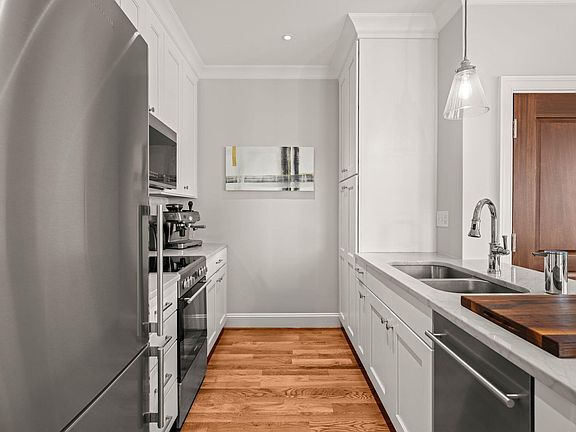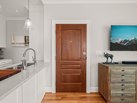 Discover this sleek and well-appointed main-level condo in a prime Raleigh location, just steps from the Village District's shopping, dining, and entertainment, as well as convenient proximity to NC State. The open floor plan showcases beautiful hardwoods and high ceilings, creating a bright and airy feel. The polished kitchen features high-end finishes and a pantry, seamlessly flowing into the living area. A private balcony provides the perfect spot for morning coffee or relaxing outdoors. The spacious bedroom includes an en suite bath with a walk-in shower and an attached laundry room for ultimate convenience. Plantation shutters add charm. With its modern design and unbeatable location, this condo is a perfect blend of style and practicality.