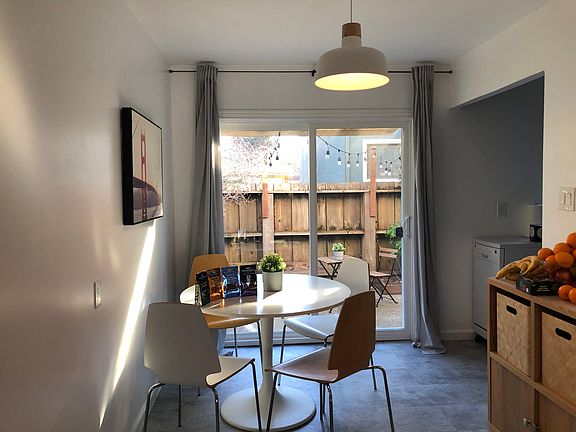 Crisp, Renovated Two-Story, Two-Bedroom Townhouse-Style End Unit , Steps from BART and Solano Ave. Optional: This unit can be rented furnished. Step into this beautifully remodeled townhouse-style end unit, featuring fresh paint, a newly renovated kitchen, and an updated bathroom. The home is flooded with natural light from large windows, sliding glass doors, and skylights, creating a bright and inviting atmosphere. Located in a tranquil neighborhood just a short stroll from Solano Ave and El Cerrito Plaza BART station. [Property Highlights:] * First Floor: Spacious living room with new flooring and large windows that fill the space with natural light. The kitchen is conveniently located next to the dining room, which opens to a private backyard via a sliding glass door. * Second Floor: Two generously sized, light-filled bedrooms, and a newly remodeled bathroom. Both bedrooms enjoy added privacy due to the end unit location. * Modern Touches: New modern lighting throughout. Double-pane windows for added comfort and efficiency. * Private Outdoor Space: A secluded backyard is perfect for relaxing or entertaining guests. * Earthquake Retrofitted and New Roof * Parking: Carport with additional storage space. * Laundry: Convenient access to a shared laundry room, shared with just two other units. First lease is 6 months, with the option to renew on a yearly basis. Pets negotiable on a case-by-case basis. This is a non-smoking property, including cannabis. Positive references from previous landlords are required. Current credit report in good standing. Pay stubs and bank statement.