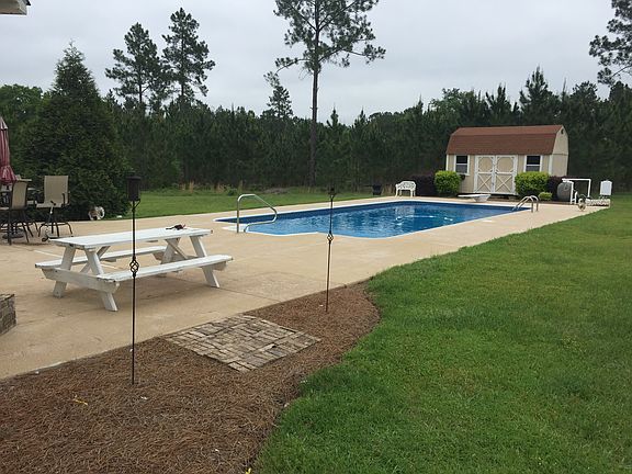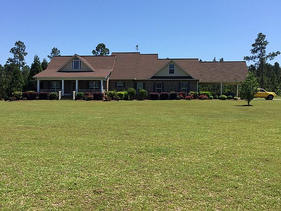 Beautiful, peaceful & private home located 4 miles from town. This home has approximately 3800sf under roof and 2700sf heated. Lots of room for entertainment. House placed in the middle of 15 acres of planted pines. In ground pool, pool storage building, 3 bay shop, additional storage building, unfinished room/storage over the carport, covered porches, huge landscaped yard, paved driveway, and long white fence parallel with the hwy. This brick home boast a huge man cave. Large living and dining areas. Cathedral ceilings, columns, stone fireplace with electric insert. Large master suite with French doors leading outside to a covered patio area by the pool. Huge walkin shower in master. Large open kitchen with porcelain tile countertops and floors. Must See to Appreciate! Brand new a/c unit 5 ton replaced in July. Contact Angela by e-mail at angelattwy@yahoo.com or call or txt 912-423-1884.