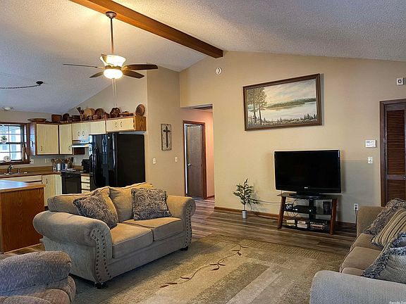 Very private setting located on 2.29 acres and just a few minutes from the Little Red River and downtown Heber Springs. Great open floor plan with vaulted living room ceiling, kitchen has a working island and includes all appliances. Features 3 bedrooms, 2 baths, large additional bonus room with vaulted ceiling makes the perfect spot for extra living space & for entertaining. Also has a covered wood screen deck on the back and a wrap around porch as well as a gently used Hot Tub that is practically new. The 2 car detached garaged is ideal for parking or for storage. This home has had new recent updates to include NEW FLOORING throughtout, NEW HVAC, NEW HOT WATER HEATER, NEW WOOD SCREENED DECK, & NEW LANDSCAPING. You will find the fenced back yard and the acreage to make the perfect place to call home for you and your family. Look today!