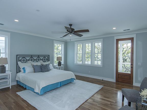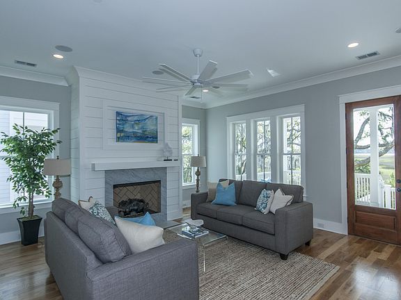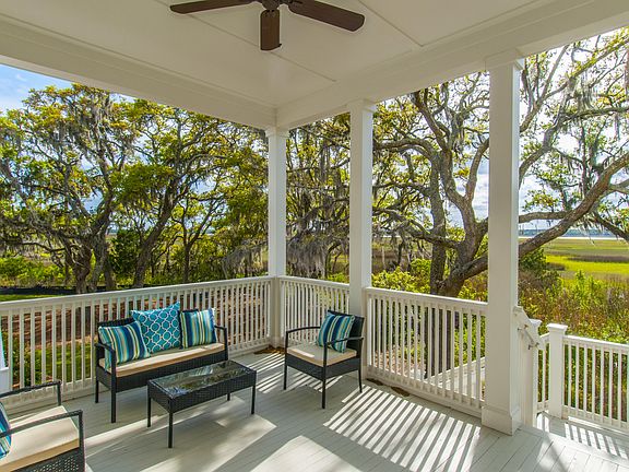 A rare opportunity to own a newly built, custom home on the shores of the Stono River. This 4 bedroom, 4 bath, 3035 sq. ft. home is nestled in a private, tranquil setting with views of oaks, marshes and water that can be enjoyed from two separate outdoor decks, as well as the kitchen, dining room, living room, and master suite. Pictures will not do it justice. Only seeing in person can one appreciate the panoramic view of the western sky over the Stono River. Come and see for yourself. panoramic view of the western sky over the Stono River. Come and see for yourself.Once you have pulled yourself away from the back deck you will enter spacious living on the first floor boasting of 10 ft. ceilings, 8 ft. tall, five-panel solid doors, 7" crown molding and beautiful 4" wide site-finished White Oak hardwood floors with matching over-sized oak stairways. The Bavarian 42" natural gas fireplace is accented with a Carrara marble and surrounded by shiplap walls. The attention to detail continues in the open kitchen with Eudora Maple cabinets, shaker style doors with full extension, wood dove-tail soft close drawers. (The same quality is seen in the laundry room and bathrooms throughout the house.) The 30" farm sink with Moen pull-down faucet is surrounded by a honed Namib White marble island. Quartzite Grigio counters wrap around the rest of the kitchen complimented by 3x6 white subway tile backsplash. Kitchen Aid stainless steel appliances include; microwave, dishwasher, 36" French-door refrigerator and a 36" Verona six burner gas range and hood. High-end details continue with features such as; Stergis Stormgate double-hung impact windows, inset Rinnai tankless water heater, structured media enclosures with RG6 Quad Shield and Cat5e wiring, surround sound speakers in the living room and outdoor weatherproof speakers on the back deck. Interior fire sprinklers with "pop-out" heads throughout the house. This house is supported by a 40 foot driven timber earthquake resistant foundation and covered by 5-V Galvalume metal roof underlain by high-temperature, self-sealing ice/water shield. Upstairs the spacious master suite and bath spans the entire back of the house with views from every vantage point, especially the walk out deck. The large walk-in closet has site-built cubbies, shelves and finishes. There is more to tell and even more to show. Come see us at The Pointe at Stono Shores!