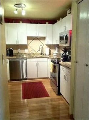 Immaculate Condo in desirable Reading, just minutes from Rts 128/93 and commuter rail. Lovely kitchen with granite countertops,tile blacksplash, and stainless appliances. Kitchen/dining room feature eco friendly bamboo flooring. Two bedrooms with tons of closet space. Two full baths. Open and spacious dining room/living room combination. Screened in balcony. Laundry facilities on premises. Rent includes heat. Cats only.
