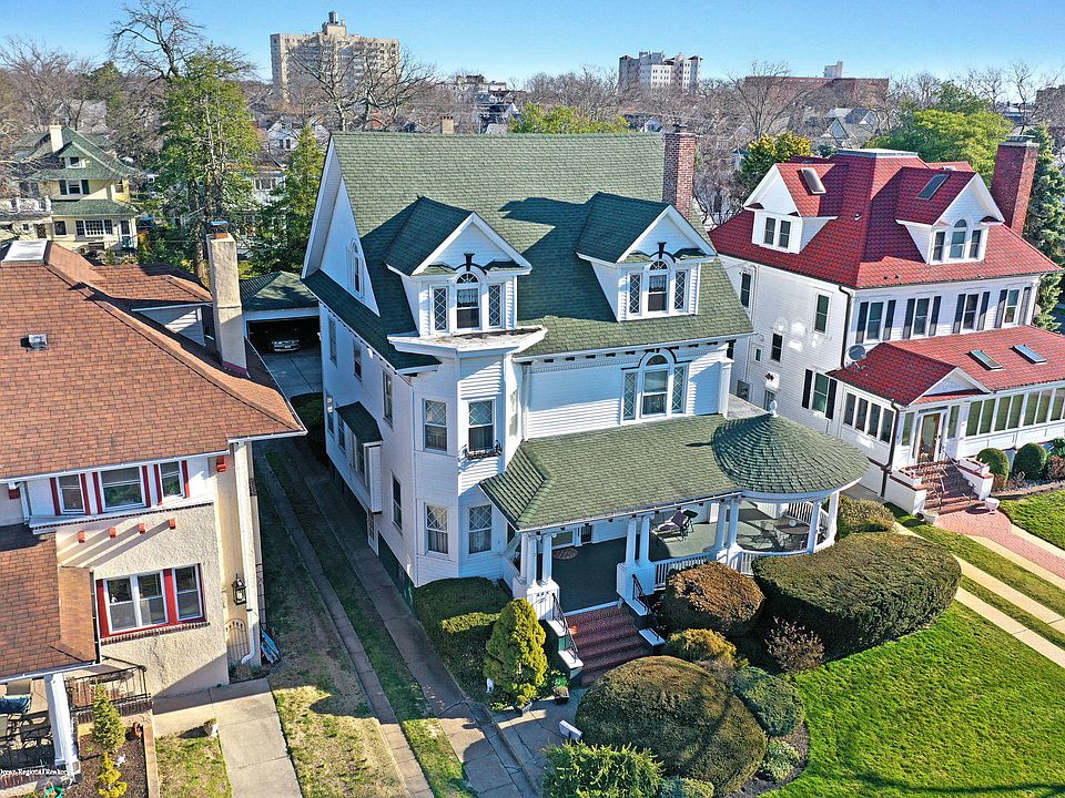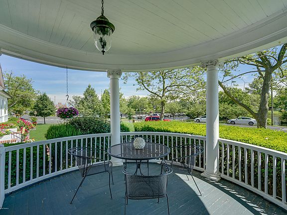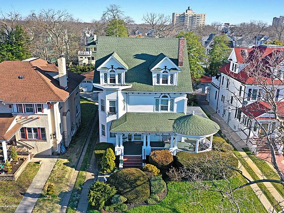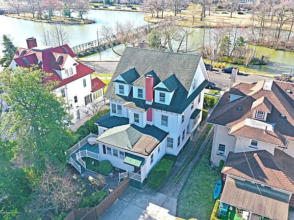 This turn of the century home, across from Sunset Lake, is replete with beautiful details of the Victorian era...rich wood trim, diamond paned french doors and windows, decorative chandeliers, curved window seat in the dining room, stained glass windows. The large wraparound front porch welcomes you with plenty of room for seating and lake views. Step through the front door to a grand foyer that is open to the living and dining rooms, with a library just inside french doors. The charming sitting room positioned off the dining room is a cozy spot for a nap or a good book. At the back of the house, the kitchen looks out on a storybook garden. There is also a mudroom with washer and dryer.