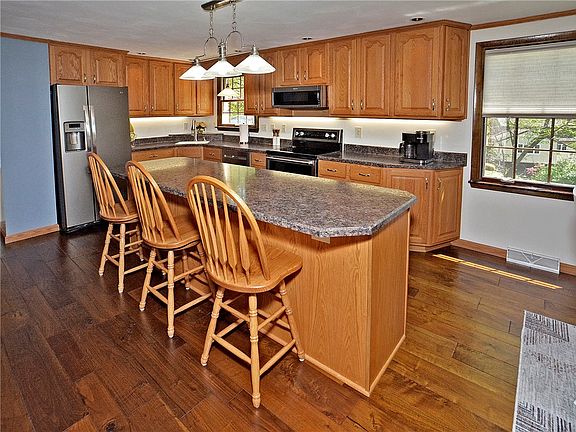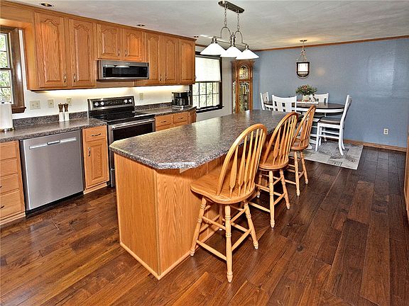 Impeccably kept 4 Bdrm 2.5 bath home / Huge 20x13 updated eat-in kitchen offers stainless steel appliances, center island, pantry and more / All baths have been updated / Covered 14x6 front porch / Large 14X12 upper deck with access to lower deck that wraps above ground pool / Two car rear entry garage / Concrete driveway / Great curb appeal!!!!