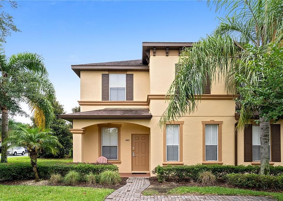 Beautiful large corner unit in the Regal Palms. Brand new Laminate flooring throughout first floor. Large lockout master bedroom downstairs with its private bathroom that can be rented out for extra cash. Large master bedroom upstairs as well with two other bedrooms. Great size balcony on second level as well as a front and back porch that fits a nice seating arrangement. This unit comes fully furnished and has about 157 rental reservations for 2021 that can transfer to new owner. Most furniture/appliances replaced since last purchase. There are very few end units available in the Regal Palms and this one is a MUST SEE for a fantastic price! Schedule your showing today! The Regal Palms is a beautiful resort 15 mins from Disney and is a serene residential community as well as a short term lodging destination rated 4+ stars on all rental platforms and conveniently located within minutes of shopping/restaurants. The resort features an expansive clubhouse with a NEWLY RENOVATED Bar & Grill, Fitness center, sauna, steam room, hot tub, arcade, ice cream shop, and more! The spacious resort pool pavilion includes a water slide, lazy river, zero entry pool, outdoor jacuzzi, sand volleyball court, and a pool side tiki bar for poolside cravings. There is a full service SPA onsite as well as a ticket concierge desk for discounted attraction tickets. Come see this unit today and don't miss a chance to own in this beautiful resort!