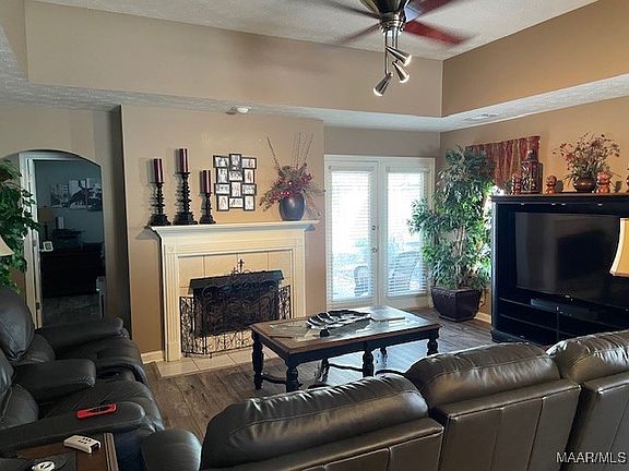 Nice open floor plan with great warm colors throughout. The kitchen has a large breakfast bar, a pantry and black appliances, the den has a cozy gas-started fireplace and french doors that lead to the covered patio. The main bedroom has a boxed ceiling and two closets and the main bath has a linen closet, double split vanities, a separate shower and a garden tub. Outside you will find a flat yard, a privacy fence, and a storage building. Ready for move in !