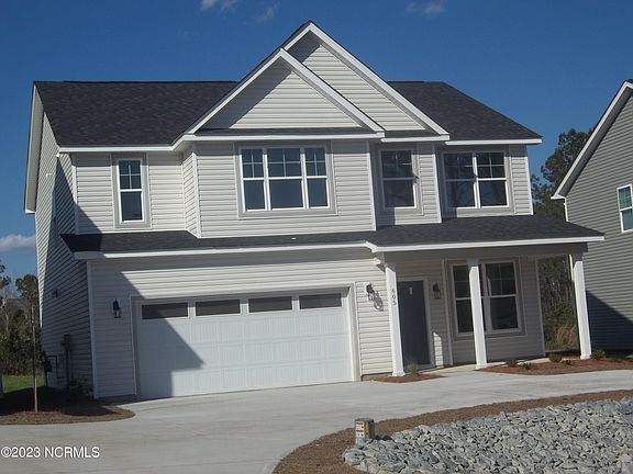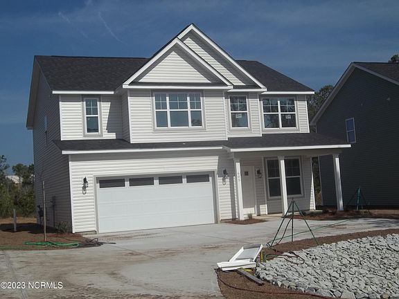 Move in ready, 5 Bedroom new construction home in Hampstead! Check out The Wilmington Plan built by Windsor Homes. in one of Hampstead's newest communities, the Terraces. 10 minutes to Surf City Beaches, and located halfway between Wilmington and Jacksonville. Neighborhood amenities will include a community pool, lake, picnic area, sidewalks, and street lights. This home will feature a covered front and back porch. Inside will consist of LVP flooring, carpet in the bedrooms, and tile in the wet areas. Stainless steel appliance package includes gas range, microwave, and dishwasher. Natural gas community. This home will have a gas fireplace and hot water heater. Downstairs has a 5th bedroom option with full bath in lieu of dining room. Upstairs is your master bedroom, along with three other bedrooms and laundry room.